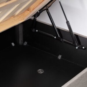 Voodi on kergelt ja vaikselt sulguvate gaasihingedega.